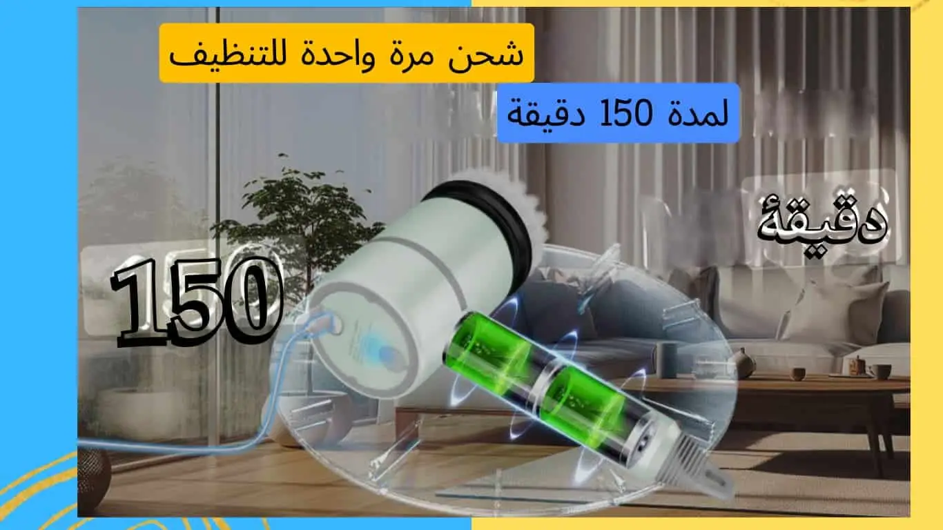 يعمل بالشحن ويدوم حتى 150 دقيقة لتنظيف مثالي دون توقف
